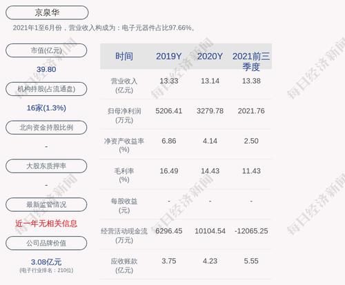 2021年1至6月份,京泉华的营业收入构成为:电子元器件占比97.66%。
