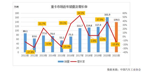 在市场需求提前释放、双限双控等多重影响下,重卡市场在2021年走势有些低迷。