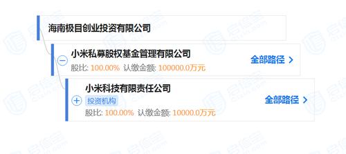 股东信息显示,瀚星创业投资有限公司由小米科技有限责任公司全资持股,海南极目创业投资有限公司由小米科技有限责任公司间接全资持股。