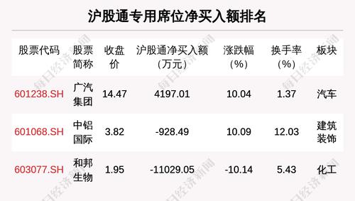 在龙虎榜中,涉及沪股通专用席位的个股有3只,广汽集团的沪股通专用席位净买入额最大,净买入4197.01万元。