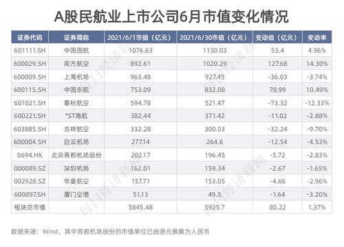 6月,国内民航业12家上市公司中,9家市值出现下跌。