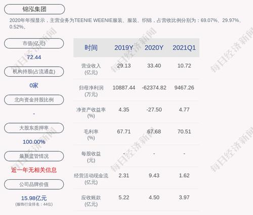 2020年年报显示,锦泓集团的主营业务为TEENIE WEENIE服装、服装、织锦,占营收比例分别为:69.07%、29.97%、0.52%。