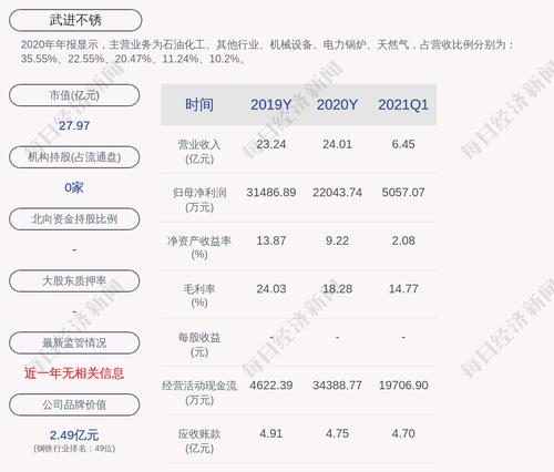 2020年年报显示,武进不锈的主营业务为石油化工、其他行业、机械设备、电力锅炉、天然气,占营收比例分别为:35.55%、22.55%、20.47%、11.24%、10.2%。