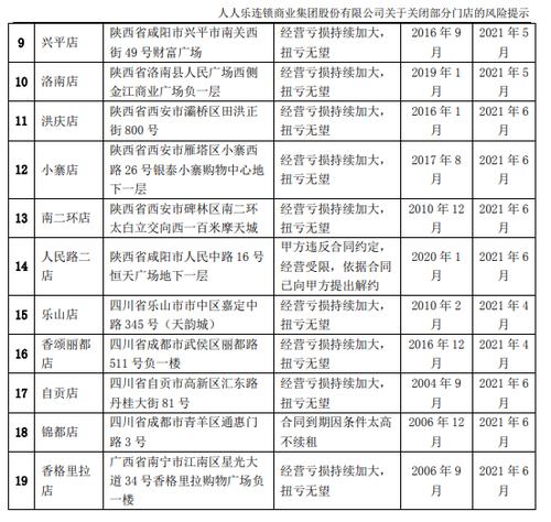 另外,人人乐还在广西和重庆分别关闭了一家分店。