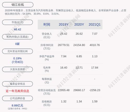 2020年年报显示,锦江在线的主营业务为汽车销售业务、车辆营运业收入、低温物流业务收入、全球采购平台业务,占营收比例分别为:54.59%、30.8%、8.6%、3.01%。