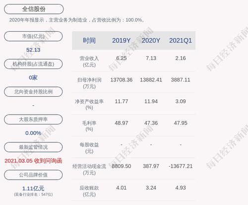 2020年年报显示,全信股份的主营业务为制造业,占营收比例为:100.0%。