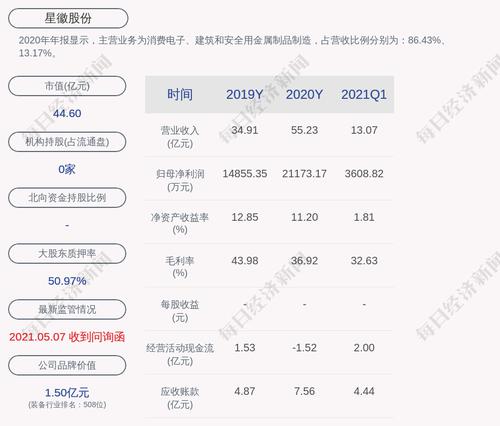 2020年年报显示,星徽股份的主营业务为消费电子、建筑和安全用金属制品制造,占营收比例分别为:86.43%、13.17%。