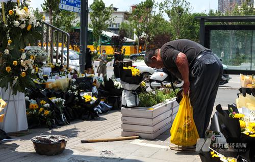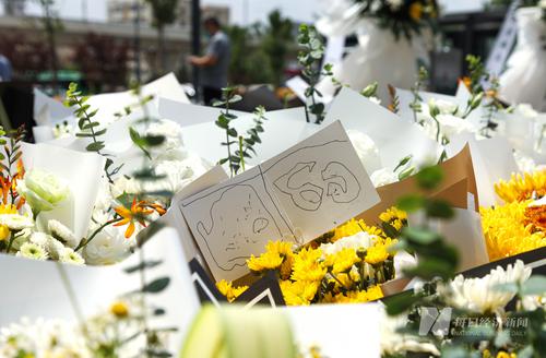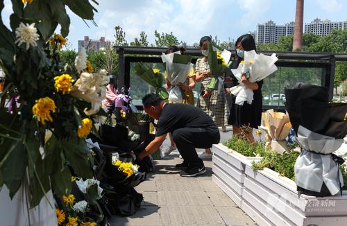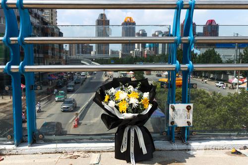 7月27日午间,郑州烈日灼灼气温炙热,距离郑州地铁严重积水事件已有7天。在郑州地铁“7•20事件”中,有14人不幸遇难。《每日经济新闻》记者赶到地铁沙口站,沙口路站B1口处已经摆满鲜花,前来悼念者络绎不绝。在郑州京广快速路隧道上方的过街天桥,记者无意间看到一束鲜花矗立着。虽然隧道仍处于清理阶段,但是鲜花寄语无不体现着郑州市民对遇难同胞的沉痛哀思。