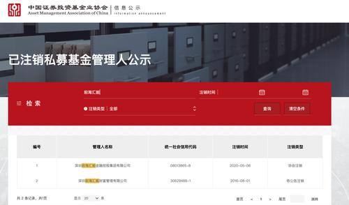 另外,中国证券投资基金业协会的资料显示,深圳前海汇能金融控股集团有限公司此前为私募基金管理人,但已于2020年5月6日被协会注销。