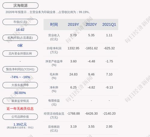 2020年年报显示,滨海能源的主营业务为印刷业务,占营收比例为:99.19%。