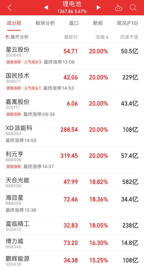 锂电池板块强势复苏,天齐锂业、石大胜华、雅化集团等近40只个股涨停或涨超10%。