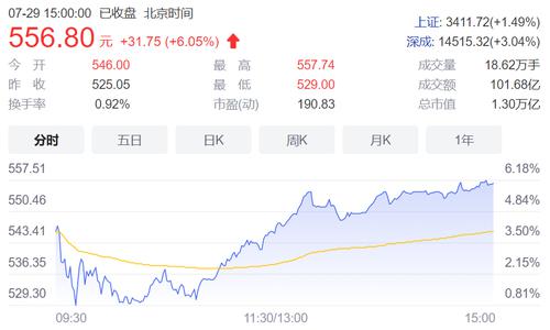话音一落,7月29日,两市股指高开高走,盘中强劲上扬,开启反弹模式。沪指盘中涨逾1%收复3400点,深成指涨幅超3%,创业板指大涨超5%站上3450点,历史上首次超过沪指。