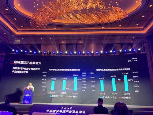 中国音像与数字协会常务副理事长兼秘书长敖然发布《2021中国自研游戏IP研究报告 图片来源:主办方供图