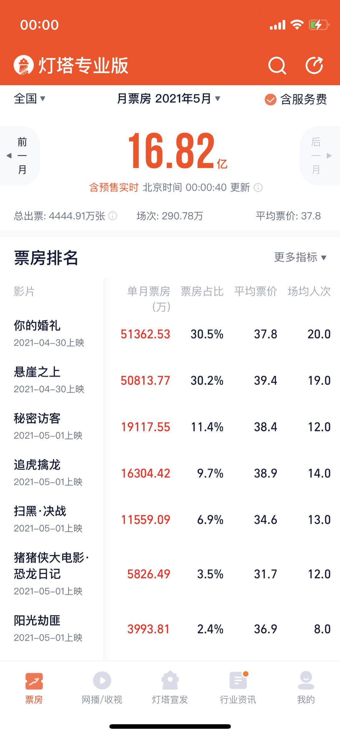 中新经纬客户端5月6日电 (张猛)牛年加长版五一档落下帷幕,据灯塔专业版数据显示,截至5月5日24时,2021年五一档(5月1日至5月5日)票房超16.82亿,近4445万人次观影,你贡献了多少?