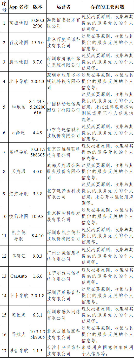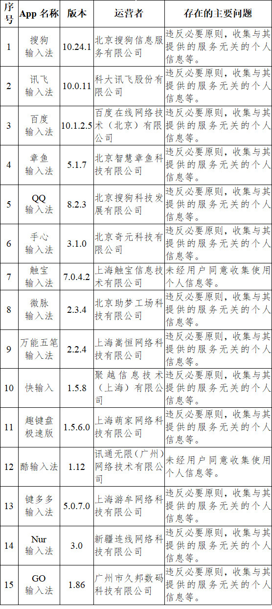 据悉,近期,针对人民群众反映强烈的App非法获取、超范围收集、过度索权等侵害个人信息的现象,国家互联网信息办公室依据《中华人民共和国网络安全法》《App违法违规收集使用个人信息行为认定方法》等法律和有关规定,组织对输入法、地图导航等常见类型公众大量使用的部分App的个人信息收集使用情况进行了检测。